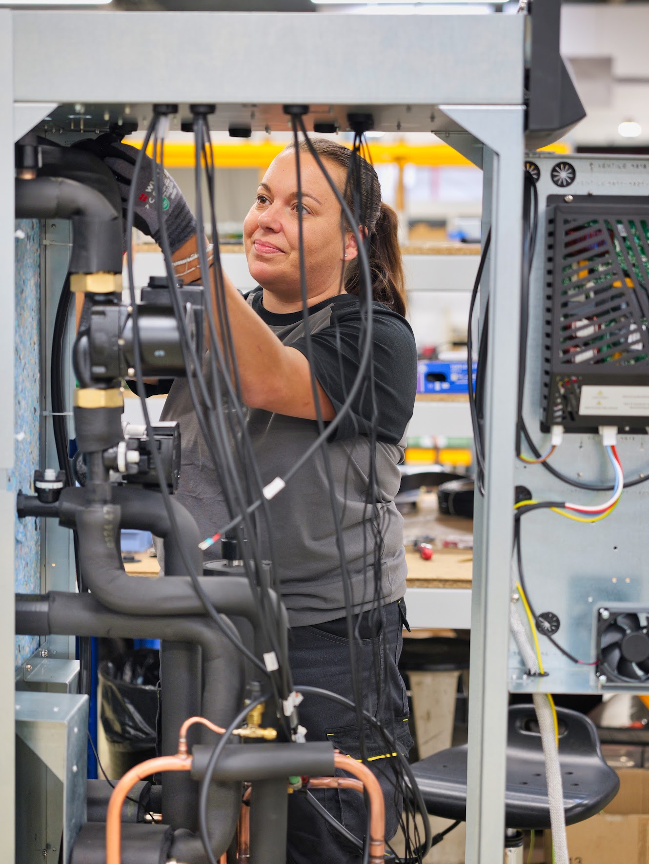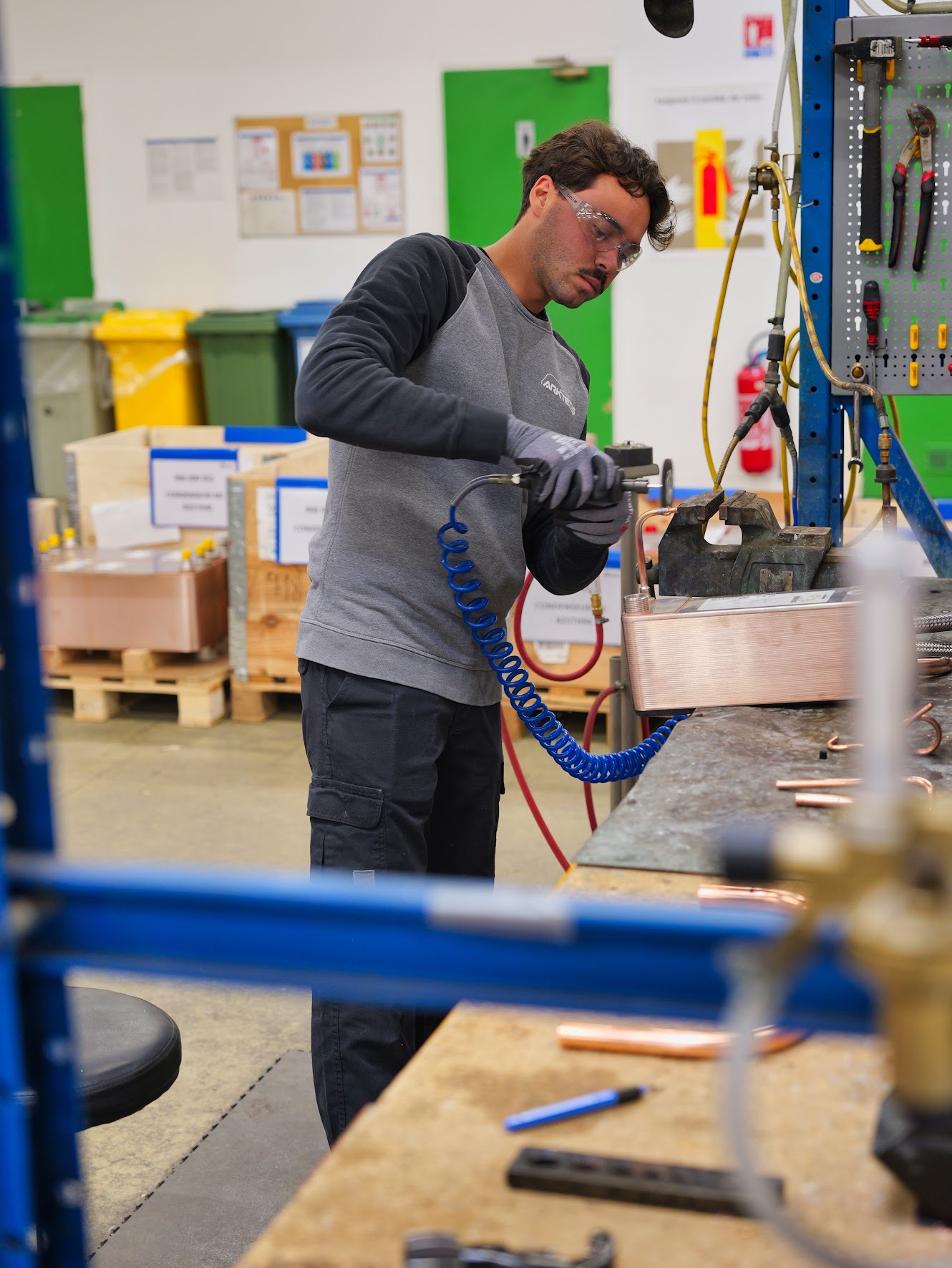 Et si vous choisissiez une pompe à chaleur conçue et fabriquée en France, avec plus de 25 ans d’expérience à votre service ? Sur notre site de production basé à Guérande, en Loire-Atlantique, chaque étape est maîtrisée : de la recherche à la fabrication, en passant par les tests qualité. Résultat : des produits fiables, performants et respectueux de l’environnement.
